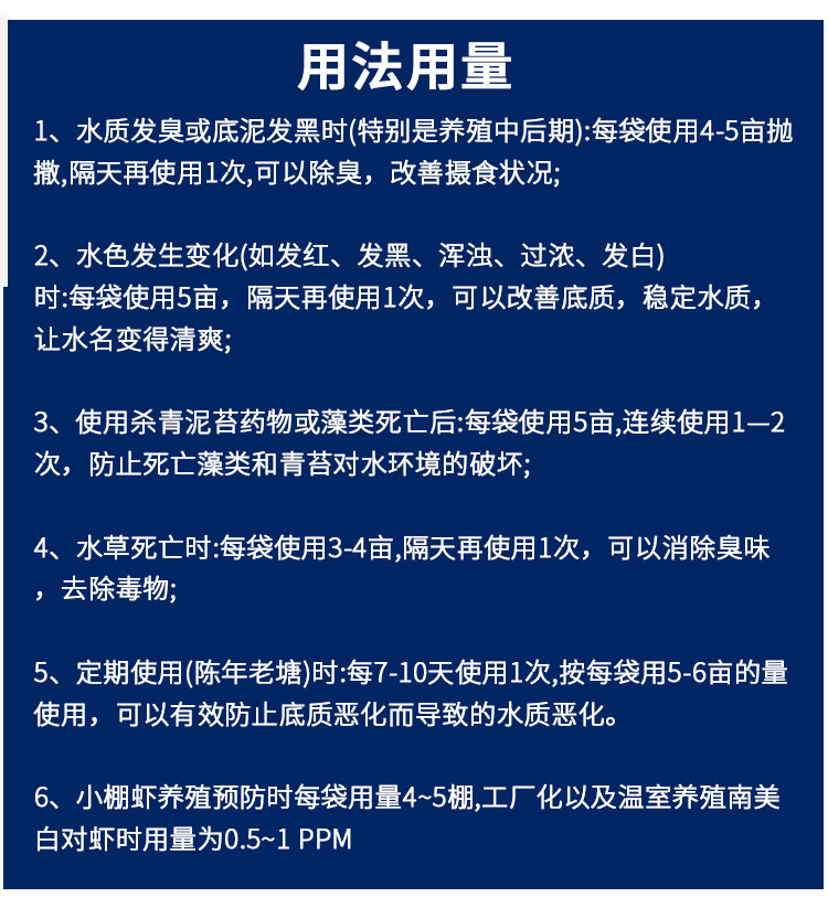 產(chǎn)品簡介:普旺生物水產(chǎn)藥清到底 改底調(diào)水增氧除臭分解淤泥混合型飼料添加劑-地衣芽孢桿菌 分解池底沉積的殘餌、糞便、動植物尸體等有機物,同時分解底層厚積 生物淤泥。生物改底幫你解決難題。