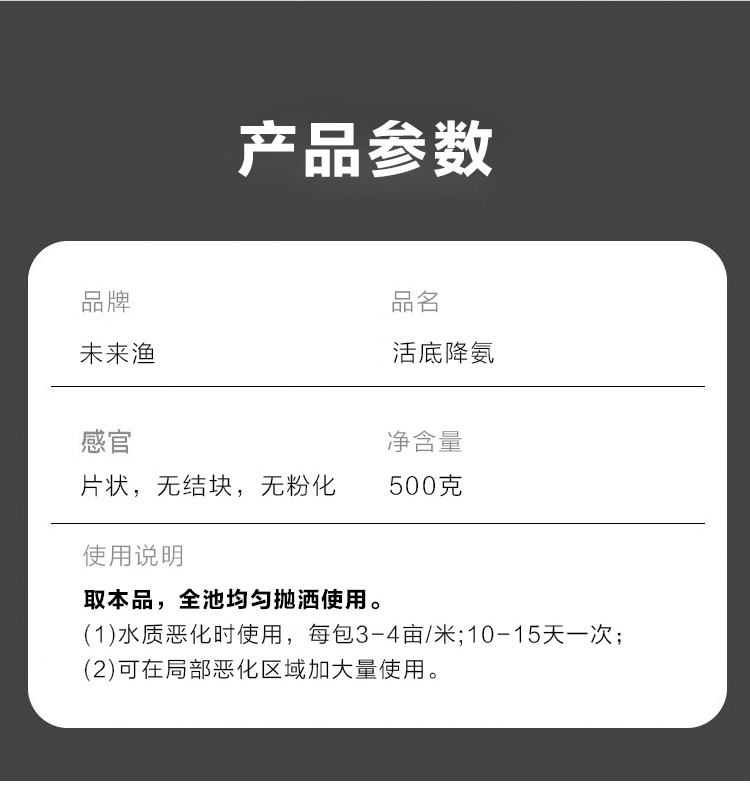 產品簡介:未來漁降氨氨氮 降亞硝 控藍藻 降COD 活底降氨