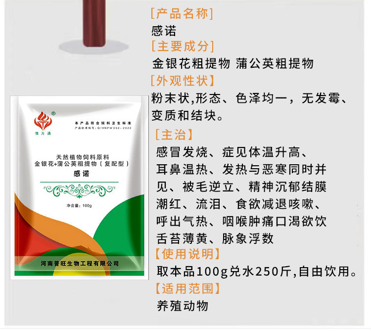 普旺獸藥廠家禽藥感諾清熱解毒感冒發燒結膜潮紅耳鼻濕熱舌苔薄黃精神沉郁