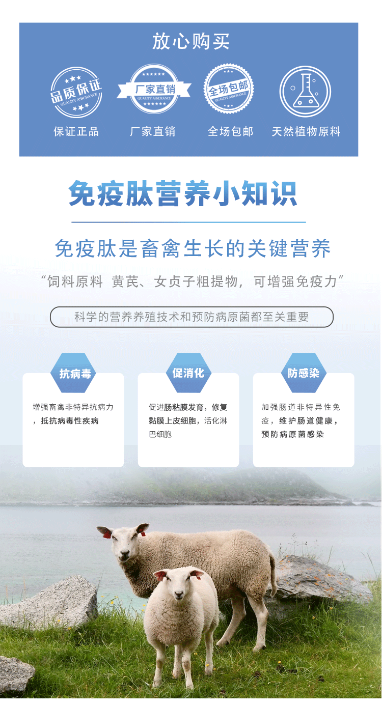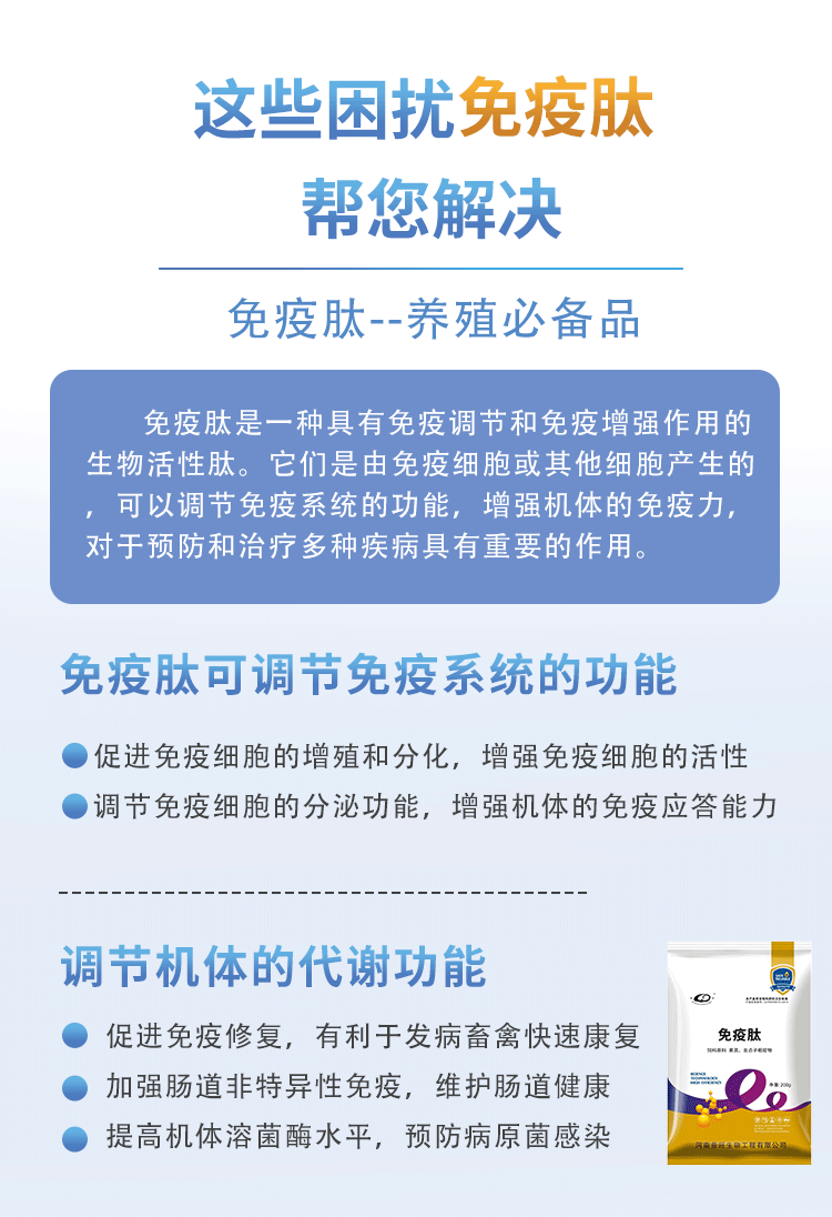 產(chǎn)品簡介:提高家禽免疫機(jī)能,降低發(fā)病率,調(diào)節(jié)免疫系統(tǒng)從而保持腸道微生態(tài)平衡,營養(yǎng)價值高,促進(jìn)消化吸收。